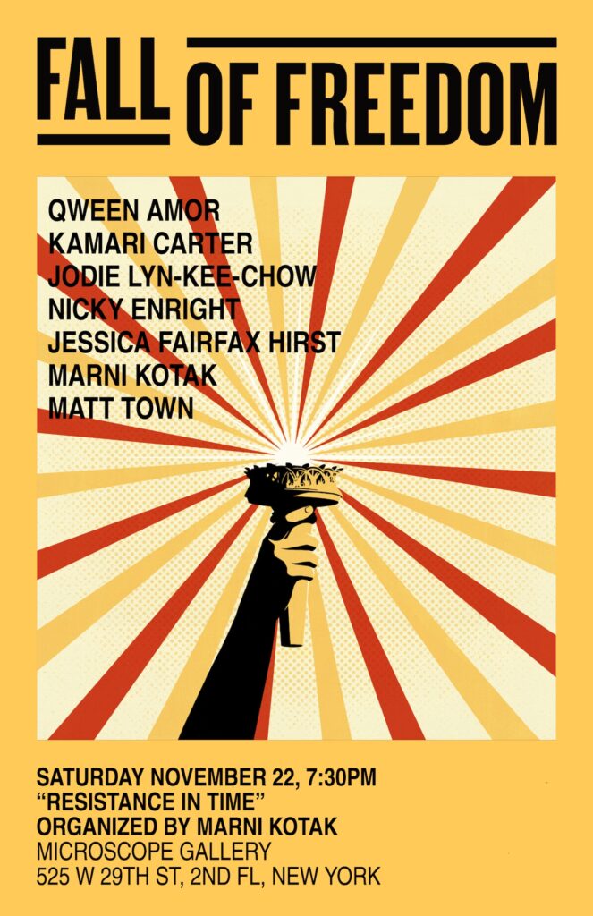 The event is organized by Marni Kotak, as part of FALL OF FREEDOM. Admission is free.